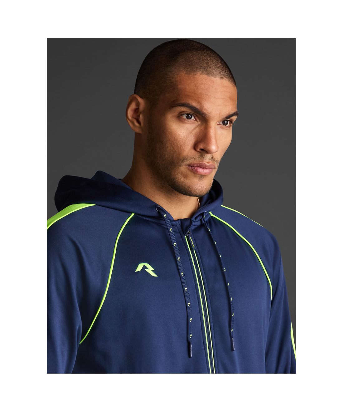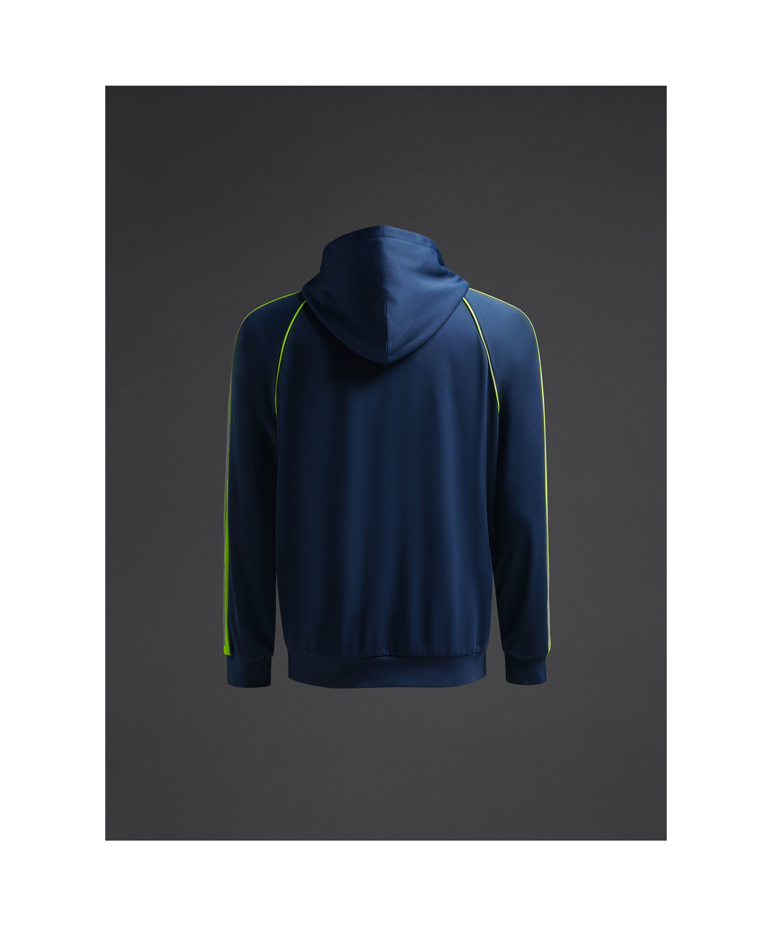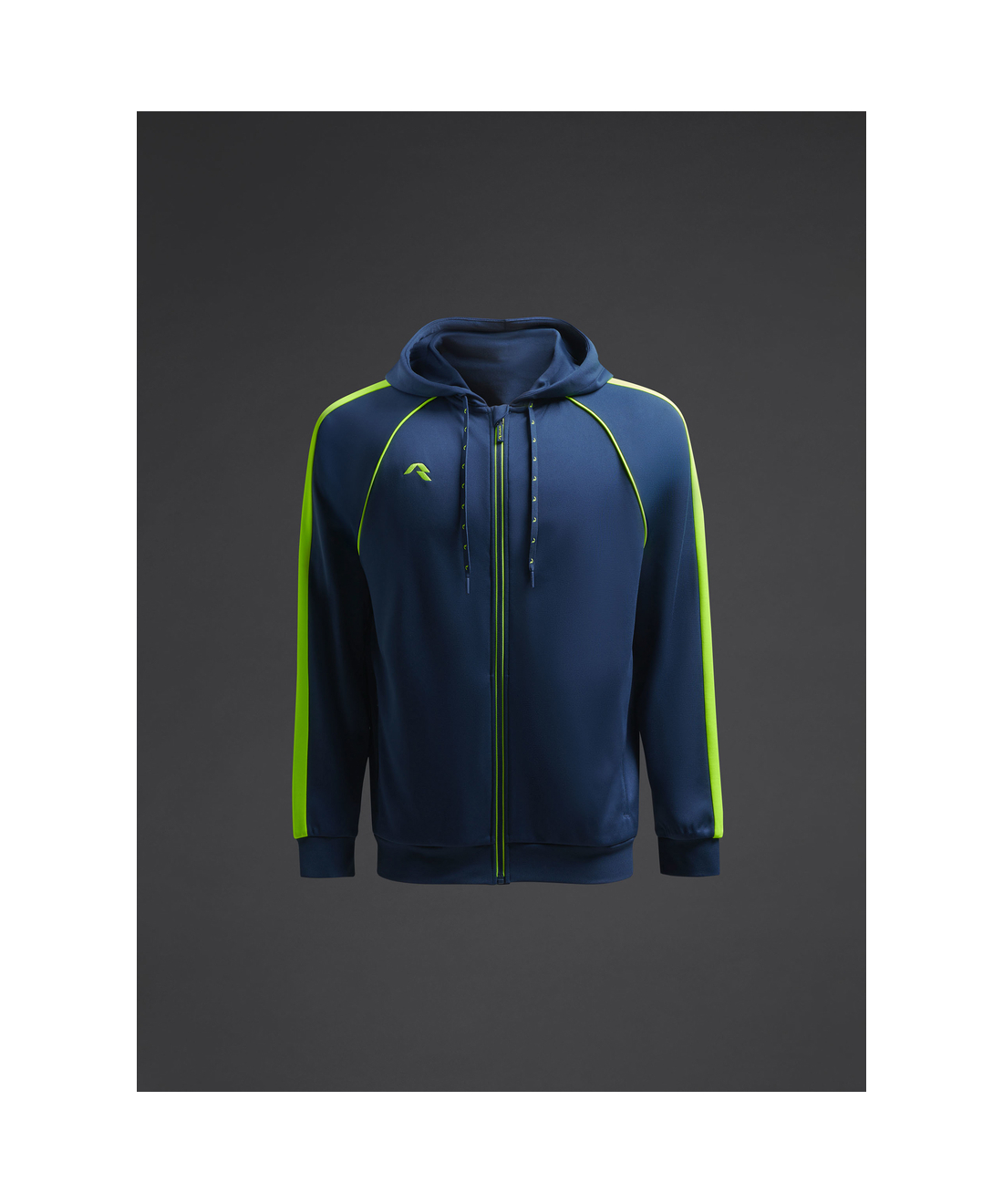 Chaqueta técnica unisex de manga ranglán y capucha, en tejido piqué de políester reciclado con interior perchado.