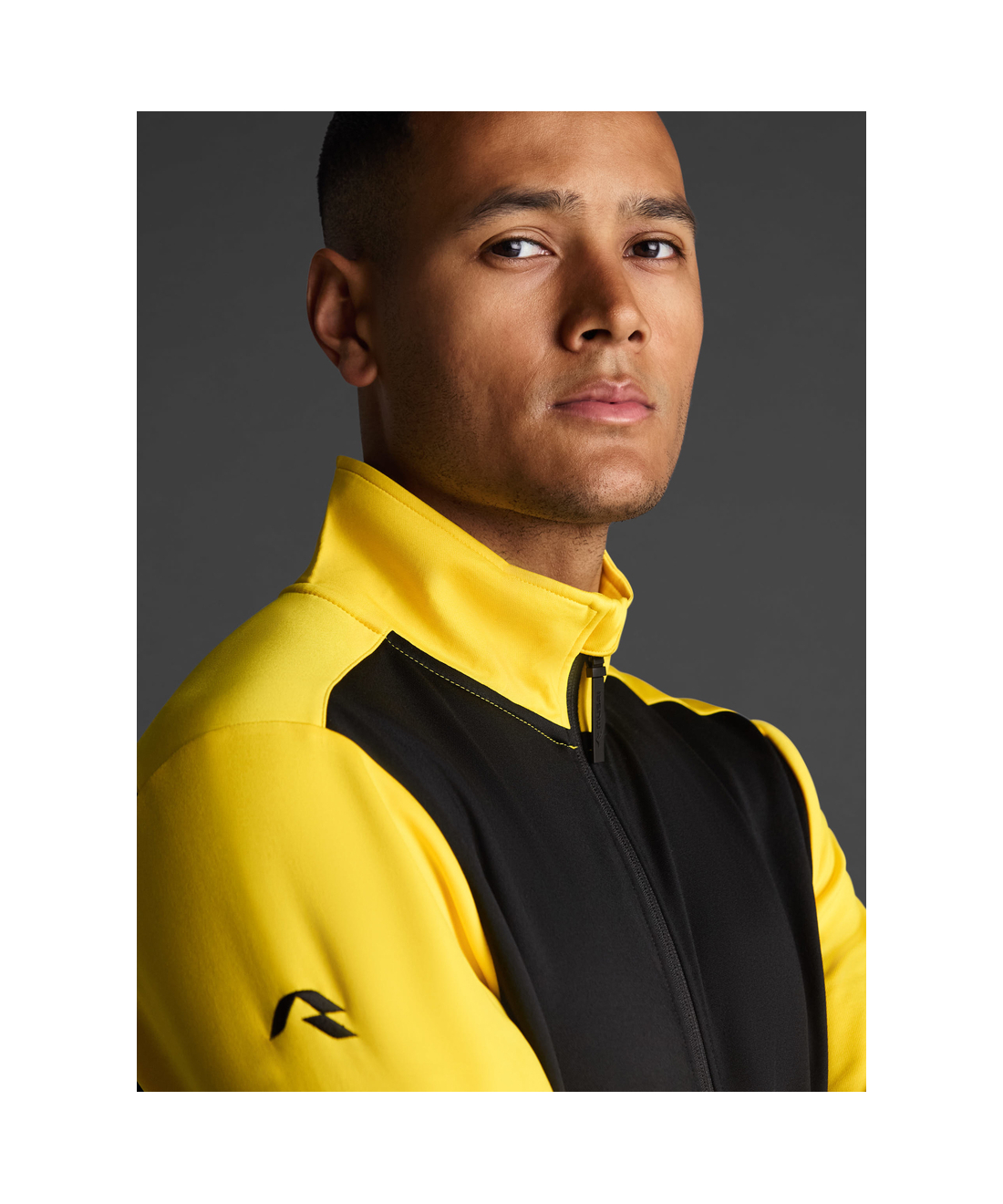 Chaqueta técnica unisex con cuello alto, en tejido piqué de políester reciclado con interior perchado.