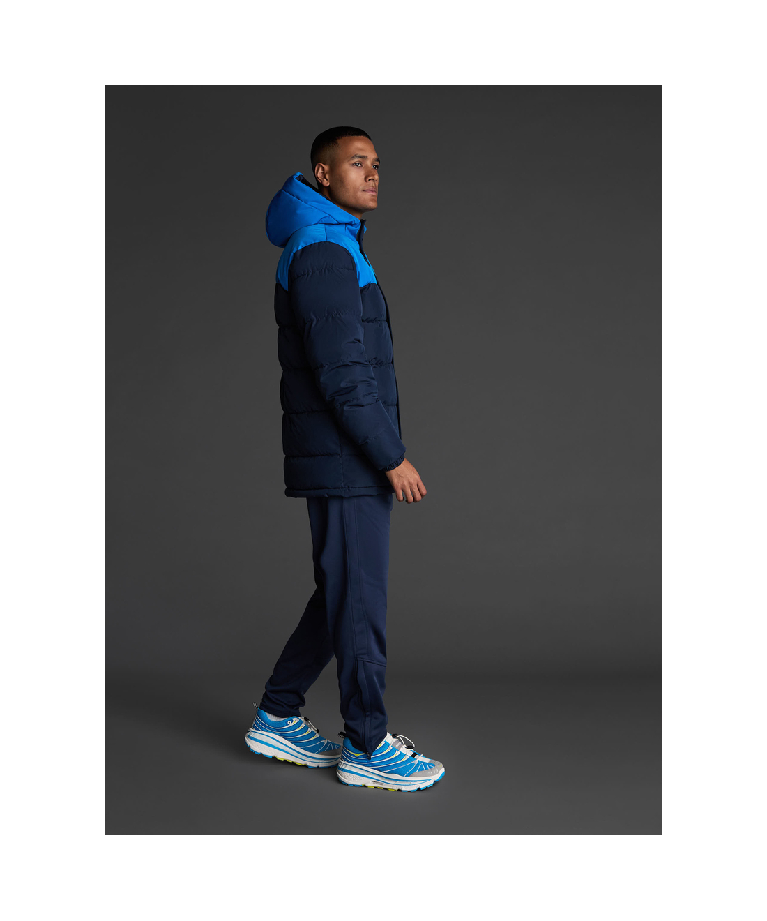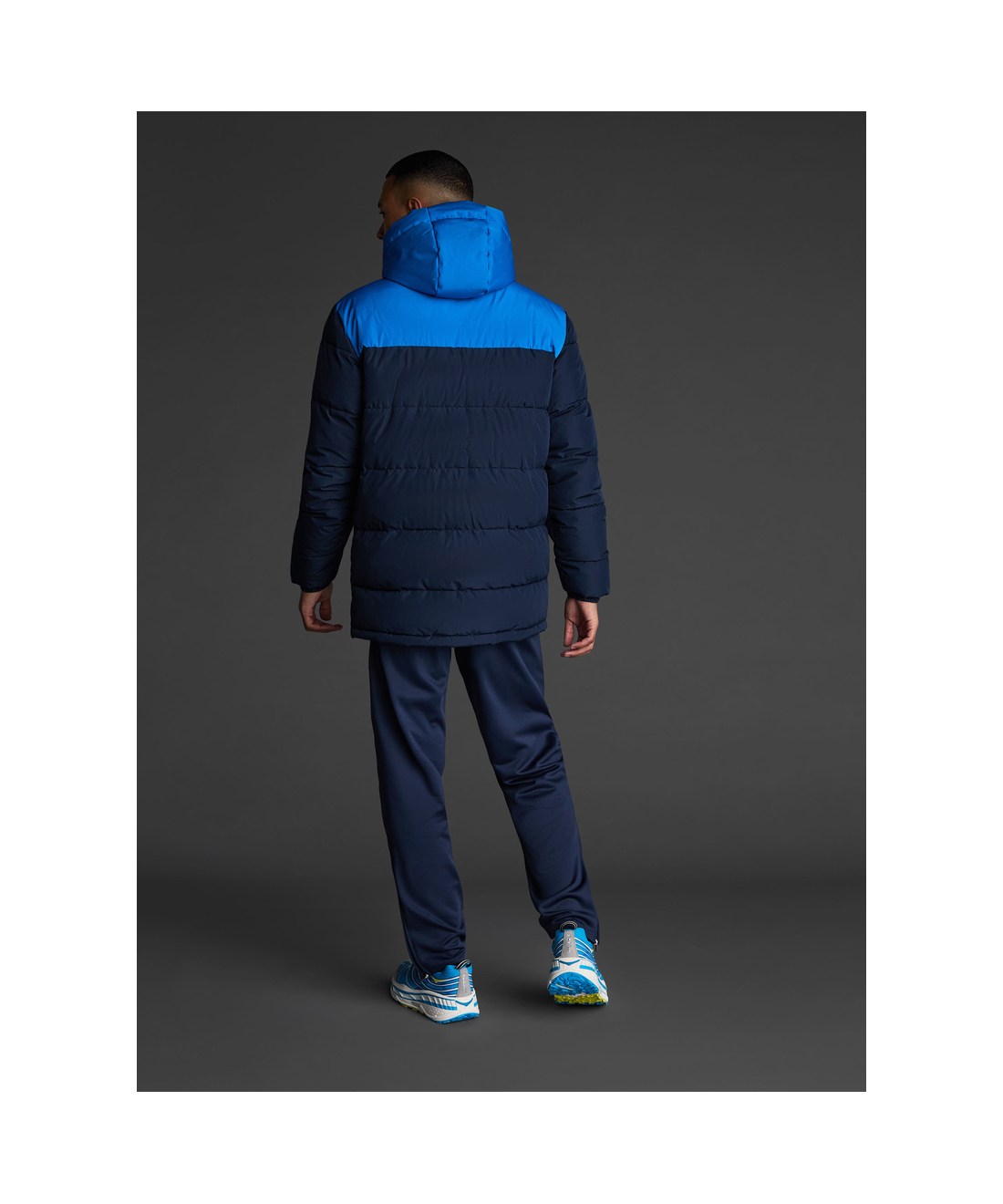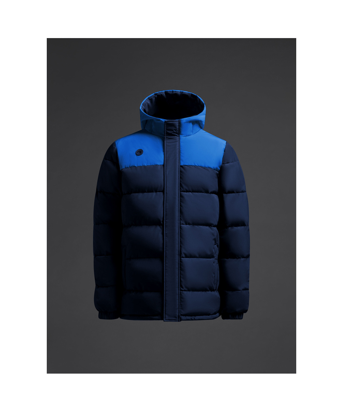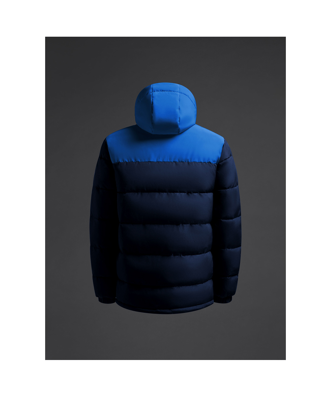 Abrigo acolchado unisex combinado con capucha fija realizado en tejido de poliéster reciclado.