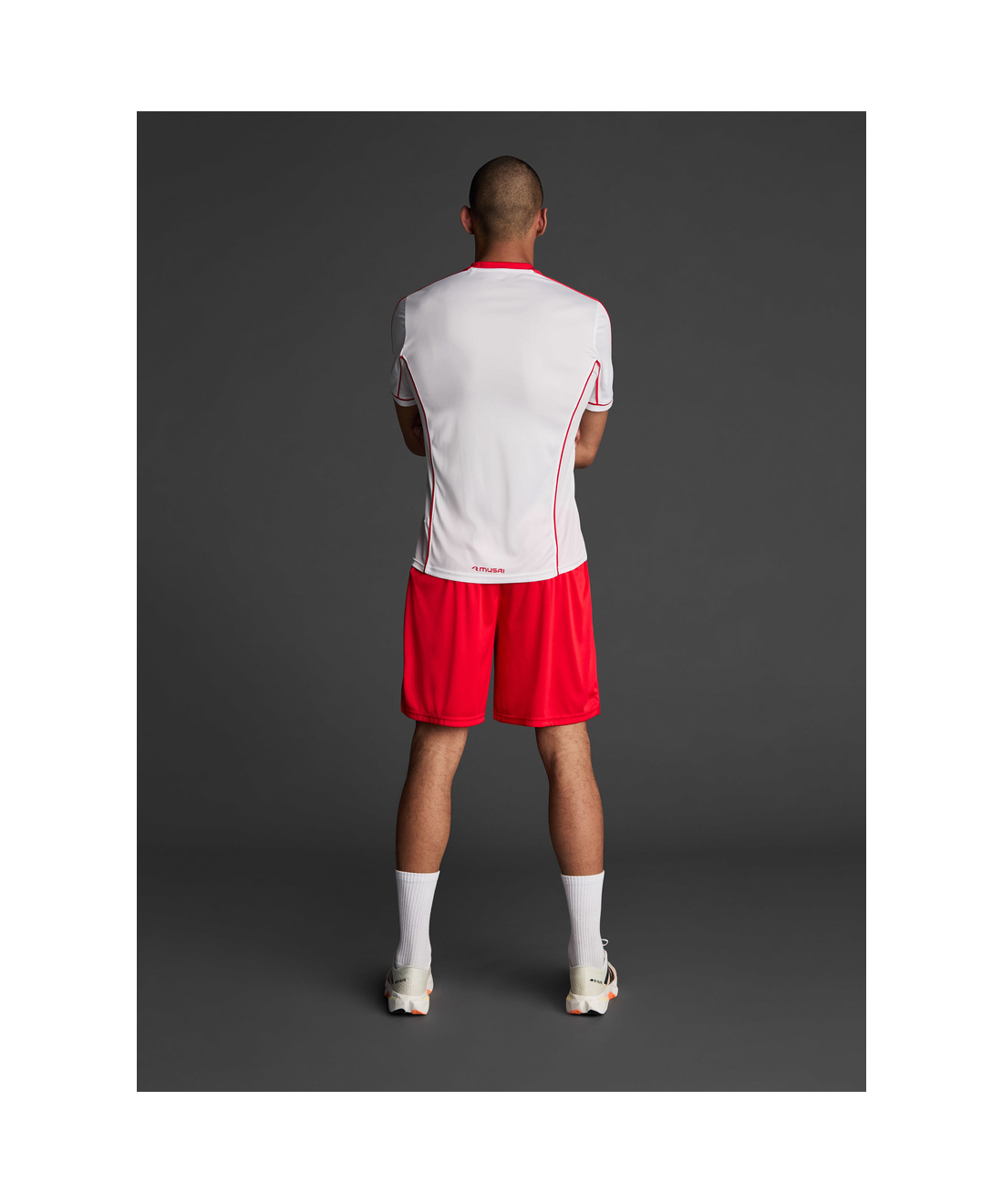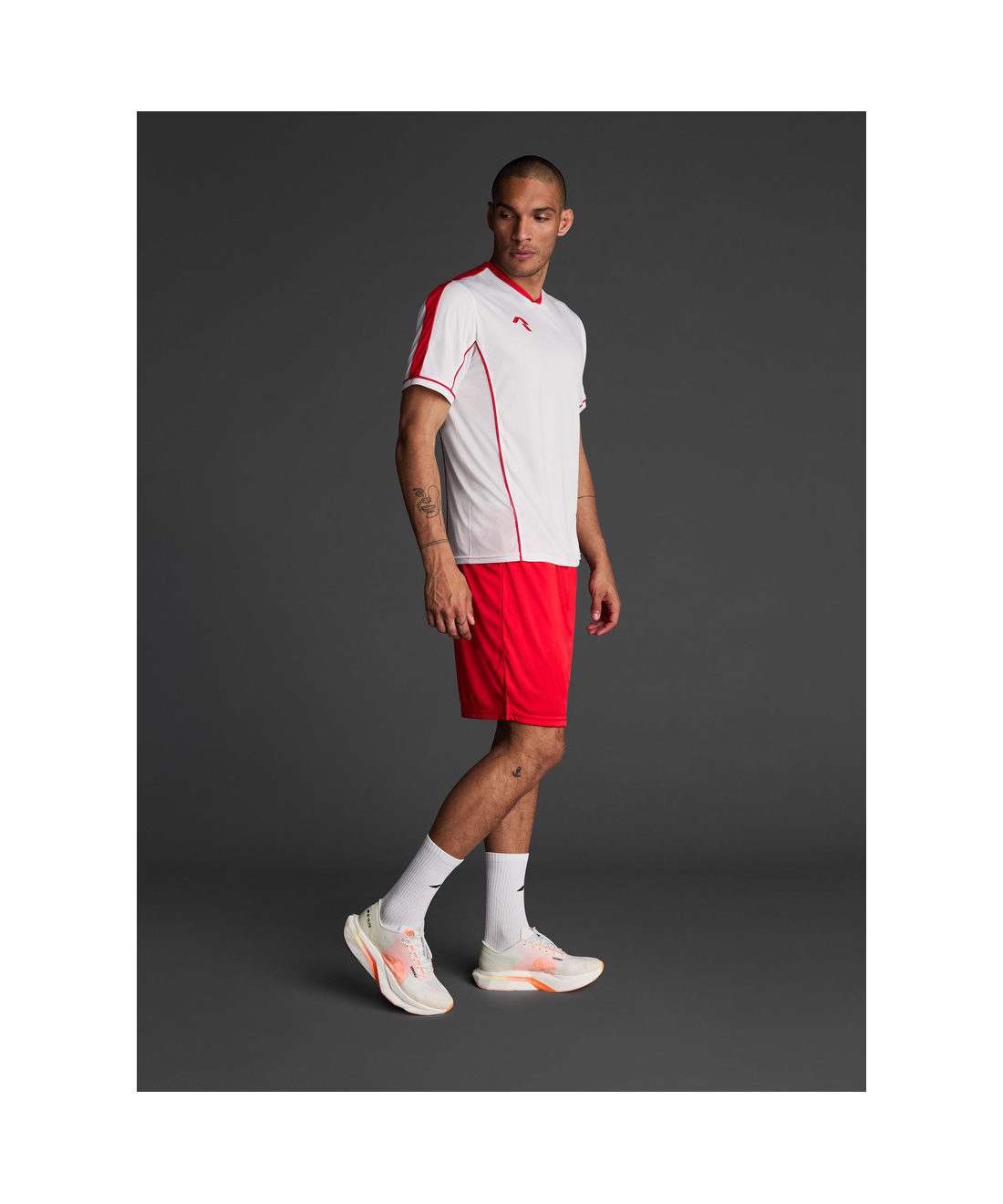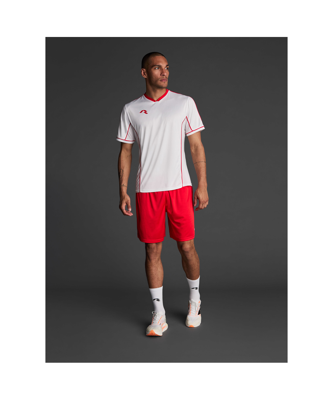 Camiseta técnica unisex de manga corta y cuello pico, confeccionada en poliéster reciclado y tejido mesh.